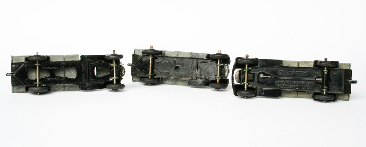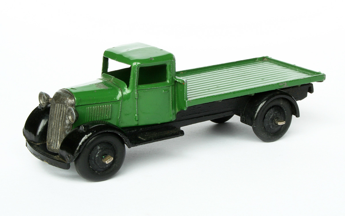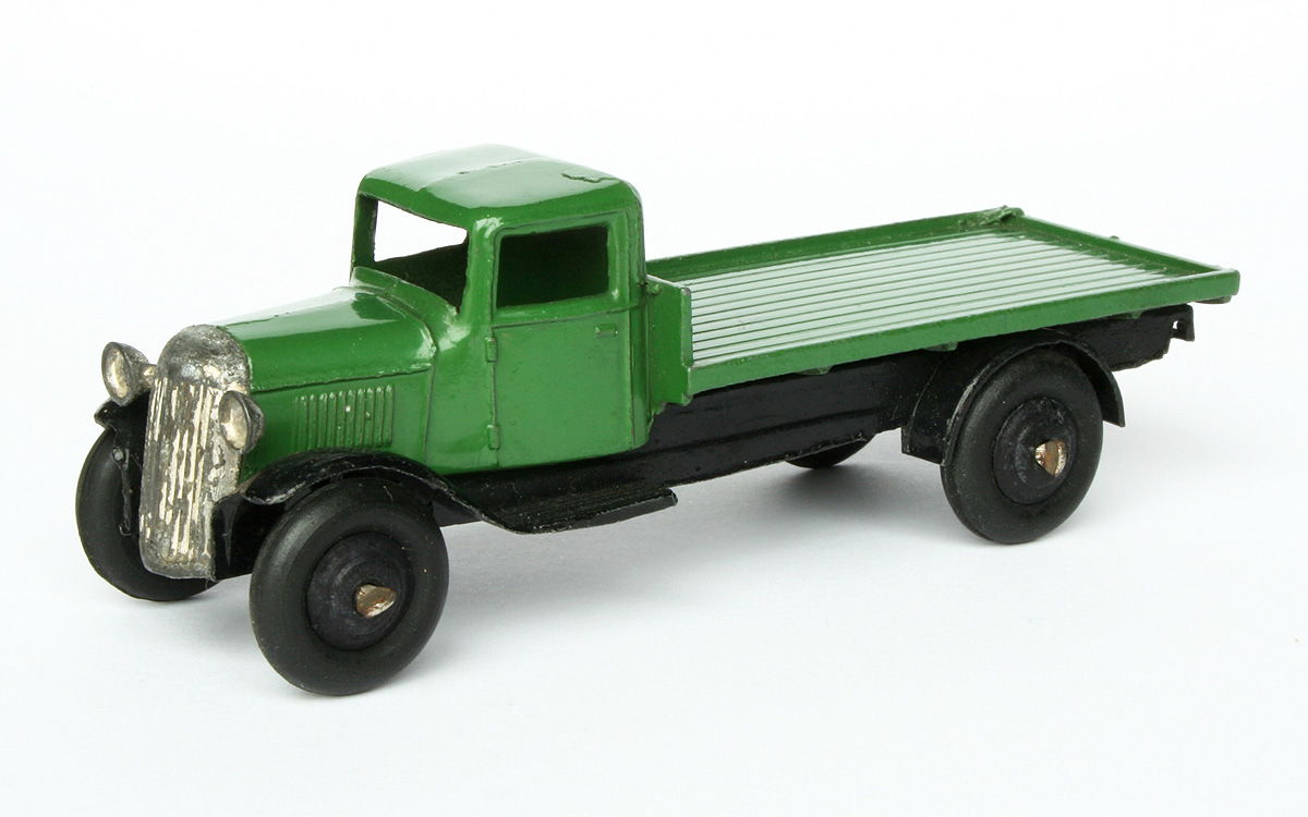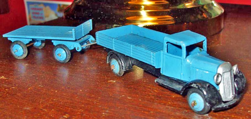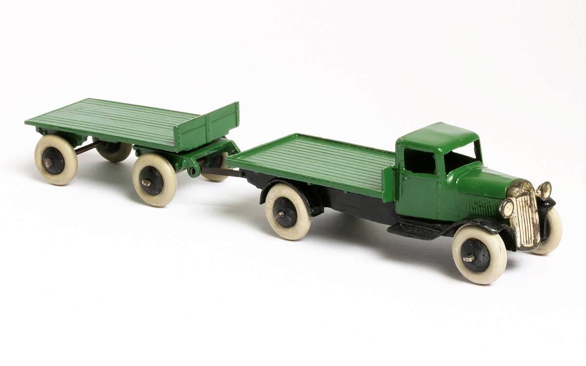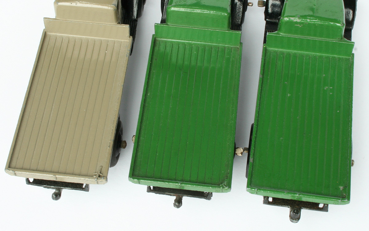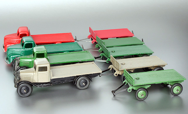 This green one, as you can see, is made up of non-matching models: the Flat Truck is a late fourth type and the Trailer is an early post-war example with smooth hubs.