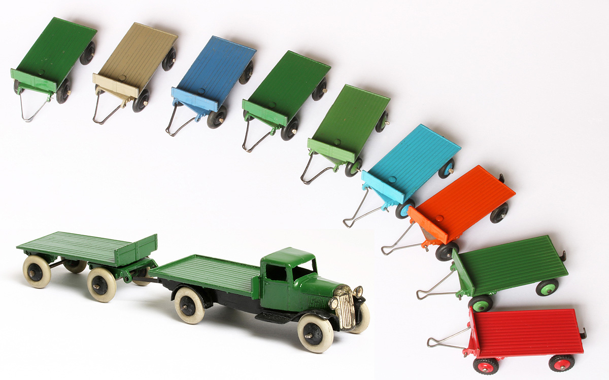 Here is my 25t Flat Truck with Trailer, in red. I bought both of these together many years ago from Keith Harvie, but I do not know if they originally came together. The truck is the last version, type 4, and both have the later ridged black wheels.Regards, Terry
