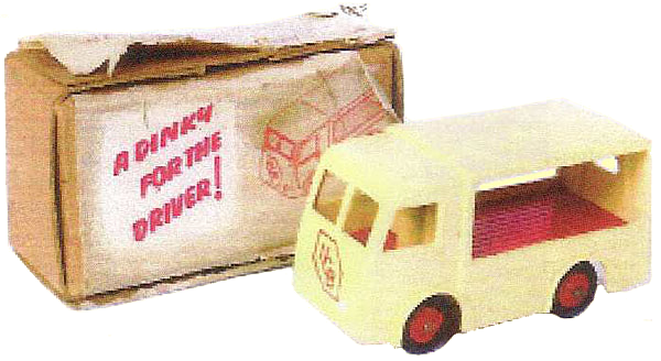 Dinky Toys 30v Electric Dairy Van 'N.C.B.' in USA catalogue 1951.