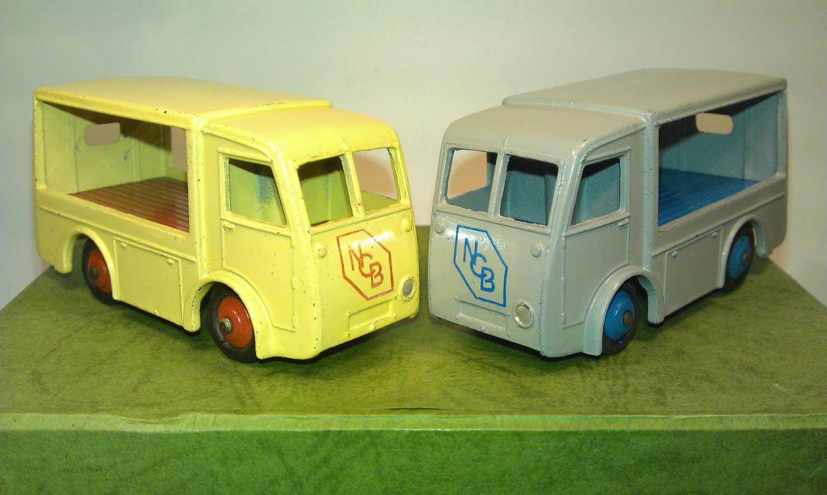 Dinky Toys 491 Electric Dairy Van 'N.C.B.' grey-blue. By courtesy of QDT. Here are my 2 main export versions without box.