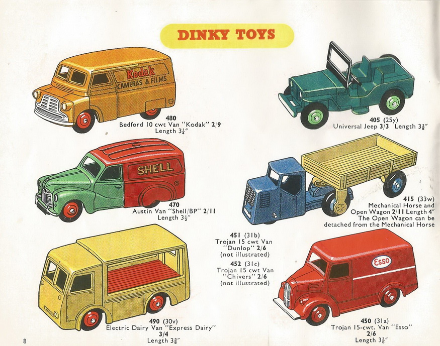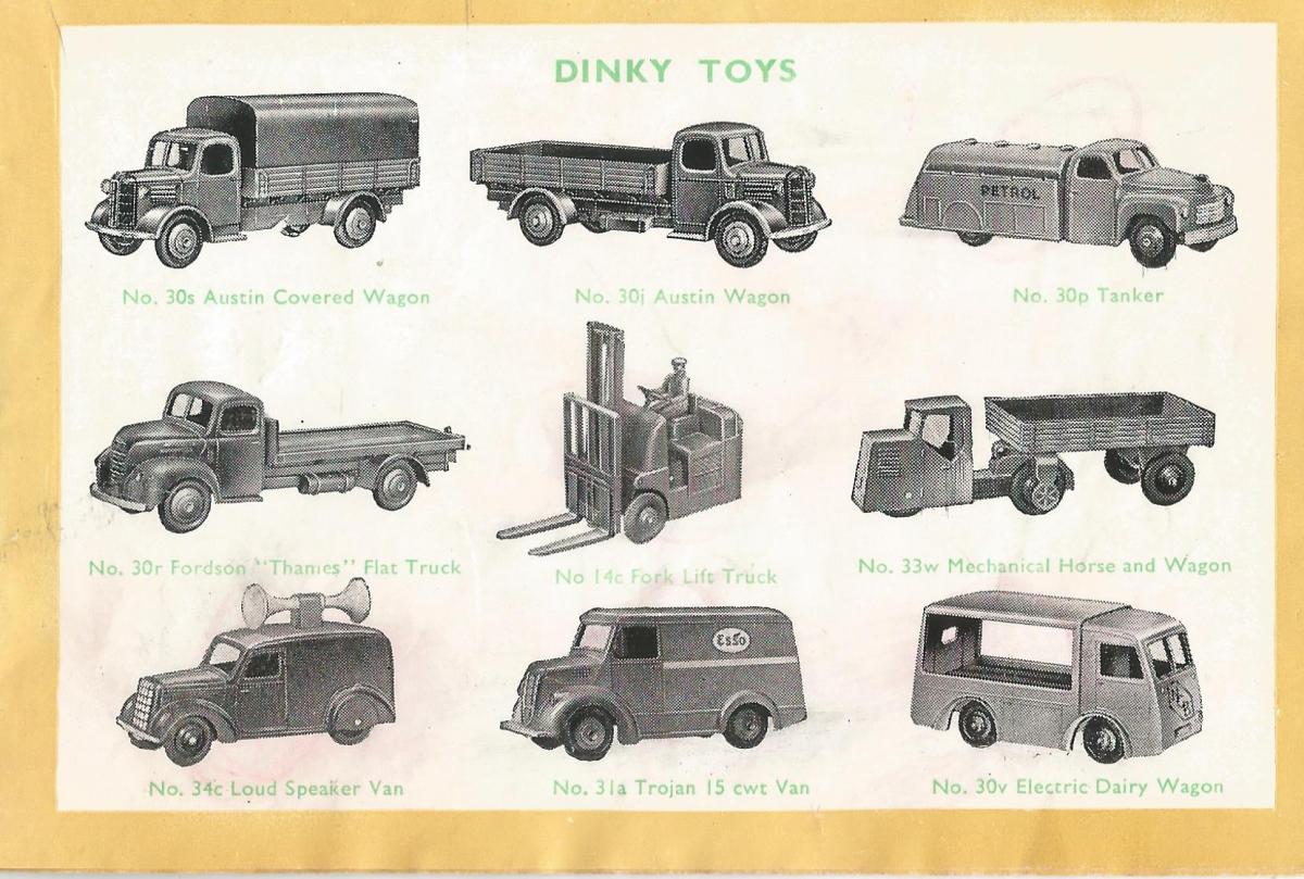 Dinky Toys 30v Electric Dairy Van 'N.C.B.' 2 main versions. As also shown in TMT I add pictures of this model out of the various catalogues.