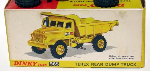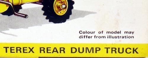and finally a new end-flap picture box with a drawing of the model on a white background became available in limited quantities clearly showing that this was a Terex Rear Dump Truck.