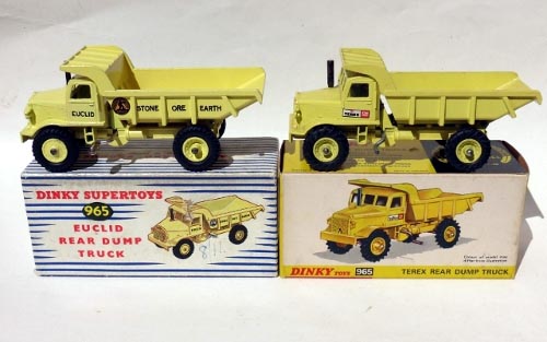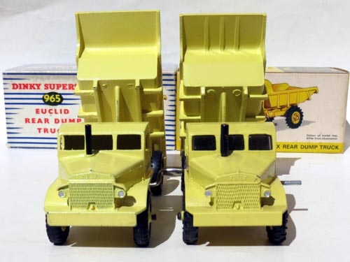 An interesting link, supplied by a member of the Planet Diecast forum:toysnz.com/Dinky965-G_EuclidRearDumpTruck I haven't read or checked every detail yet, but it may be interesting for 965 Euclid fans to do so! Kind regards, Jan