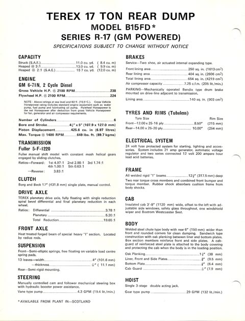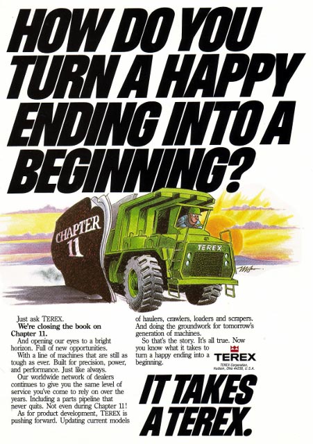 When the antitrust restrictions expired in 1972, GM re-entered the American market with its 33 series end dumps and 34 series coal hauler. Although the following advertisement referred to GM and its emergence from bankruptcy in 2009, the same could have been used for Terex in 1972.
