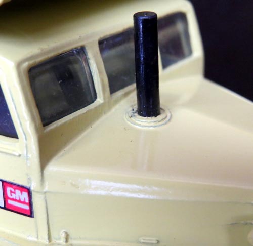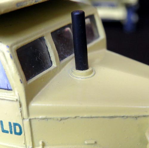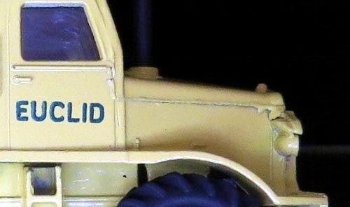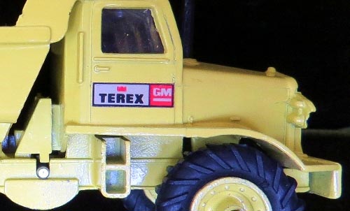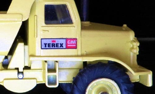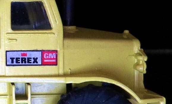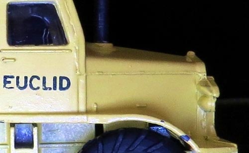Then closer examination reveals other differences. One is the decrease in the size of the support surround to the exhaust stack, and the second is the alteration to the radiator above the grille and below the vehicles name, as the Euclid has a raised line which is absent with the Terex.