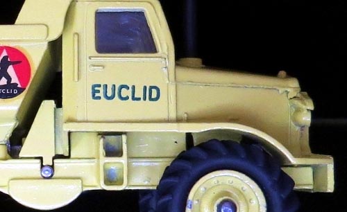 Thank you Kevin, these show many unlisted variations. Jacques.' Kevin and Jacques A very, very interesting comparison between the Euclid and Terex versions. I would, however, like to see a similar comparison between the LAST Euclid and the Terex, as the Euclid casting in Kevin's photographs is that of a FIRST casting made prior to at least 3 November 1955, as the early casting shows up in several of Kevin's photographs, most of the differences I included in my various posts. The first photograph does show a graphic difference but I am wondering about the focal length of Kevin's camera as the different height for both exhausts is very noticeable, and the Terex grille etc appears smaller. The second photograph shows the Terex (on the right) more in focus than the Euclid, and this would depend on exactly how the camera was held, as both should be in focus. But it is the 4th, 6th and 8th photographs that determines the model Euclid used in the comparison photographs. The 8th photograph shows the larger hole for the larger pin that I wrote of and posted in both threads which at first I thought occurred in the last issues of the Euclid but corrected this in one of my last posts. I had downloaded into my computer all the discussions in TalkModelToys concerning the 965 but have not done so with Planet Diecast which I must do now! In fact