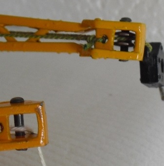 So, here are the diffences on the arrows, that I noticed on my made in England Lorry mounted cranes : 1) no pulley on the latest version, at the arrow's head. 2) The arrow's head is bigger on the first version, with a different shape. 3) The spaces between the cross-bars are quite different. These three points added to the others (see above), let think that Meccano used, at least 3 moulds. That's all folks, until I receive the next one, which is on it's way