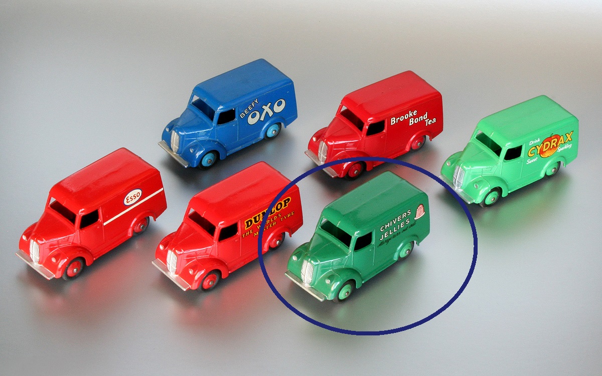 The jellies of Chivers Jellies. I like these contemporary advertisements for products that are advertised on some of the Dinky Toys vans. Some examples of the amply present pictures on the internet below. For other discussions on this van I may restrict myself to referring to this thread of talkmodeltoys: dead link Kind regards, Jan