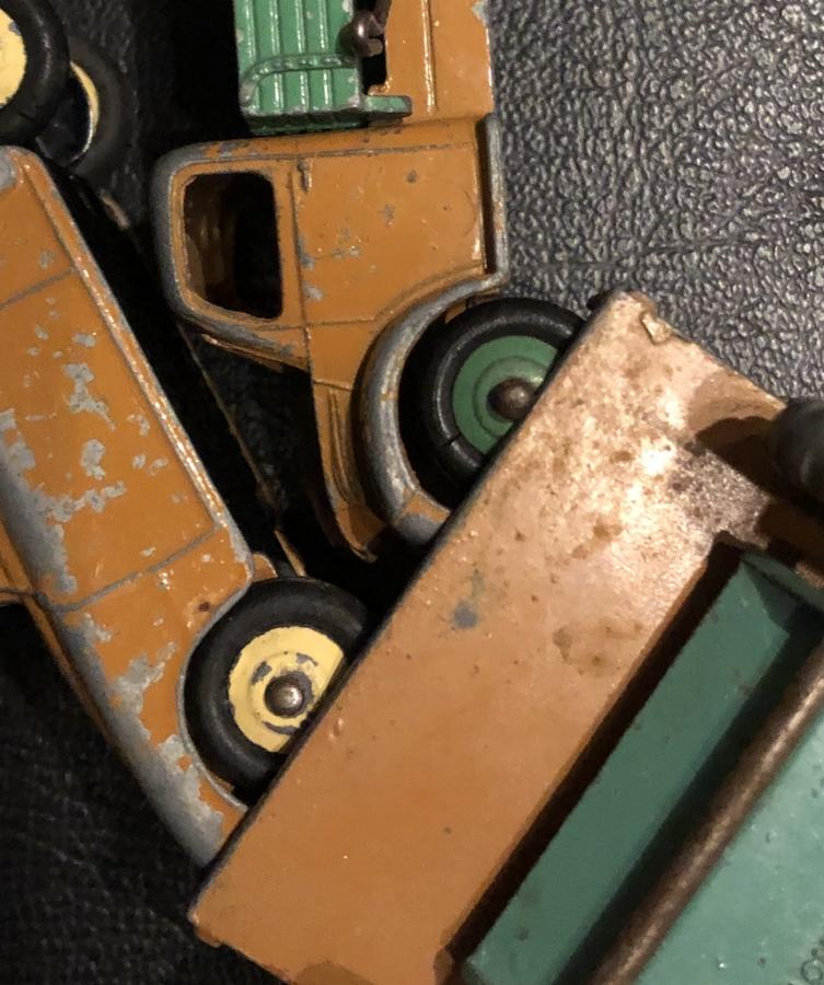 Hello kasvd it is a known colour. It was available either with light green ridged hubs and with louvres on each side of the bonnet or with spun concave hubs, without bonnet louvres.the late issues have the reference number 414 cast under the tipper. Is yours marked 30 m or 414 or nothing ? The orange / green finish can also be seen in Jan Werner's post #7 above.