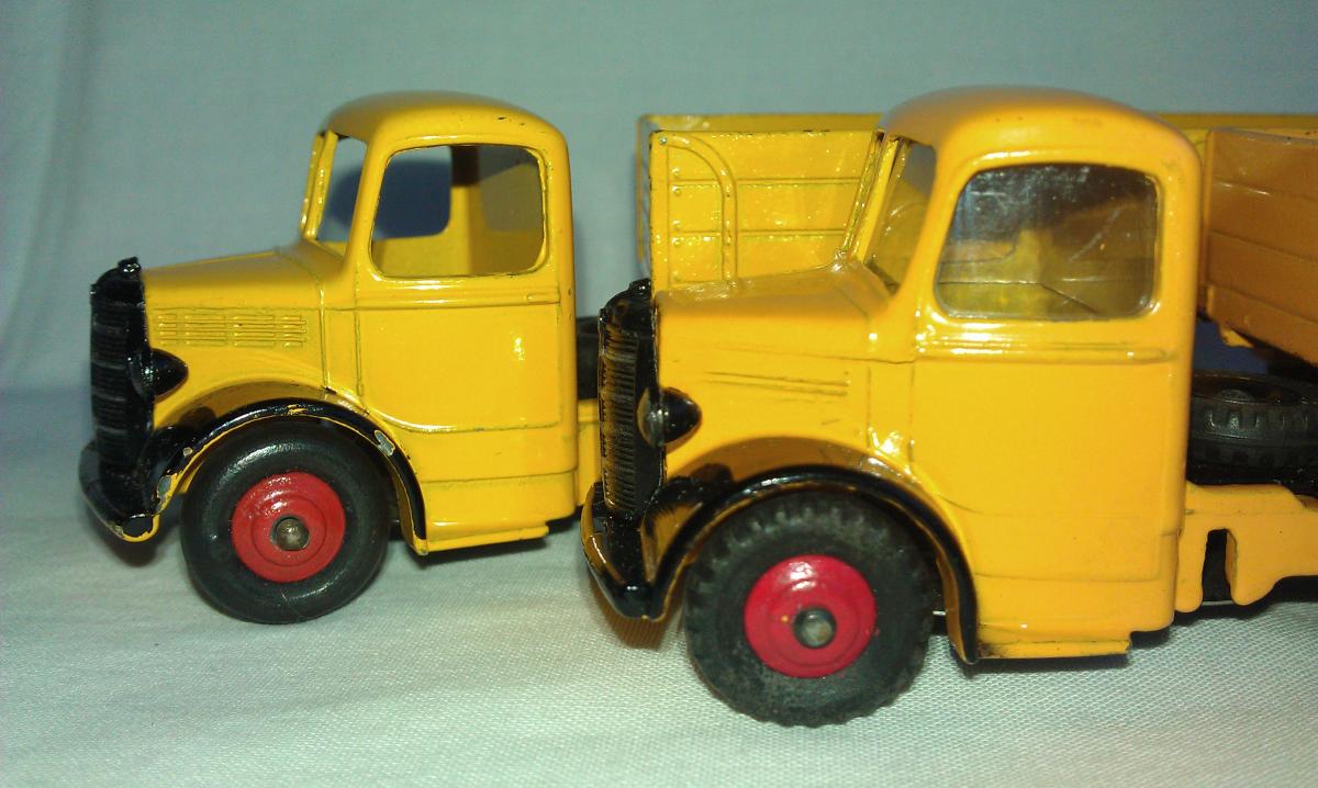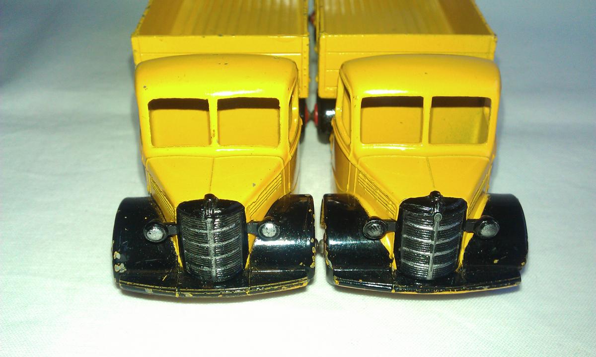 Hi all,A small contribution to this nice thread: the first and last variation of the yellow Bedford alongside each other. The first with black hubs and the last with the unpainted radiator and windows. The color difference is striking as well, a dull yellow for the first and a much more orange yellow for the last. Both models are scarce. The unpainted radiator is a feature shared with the last issue 410 Bedford Tipper. I quite like the unpainted radiator, but perhaps its rarity enhances my feeling. I like rare Dinky Toys! The 409 with unpainted radiator was bought by me on eBay last year for GBP 115. The GBP 400 paid at Vectis for this model seems high. Kind regards, Rob