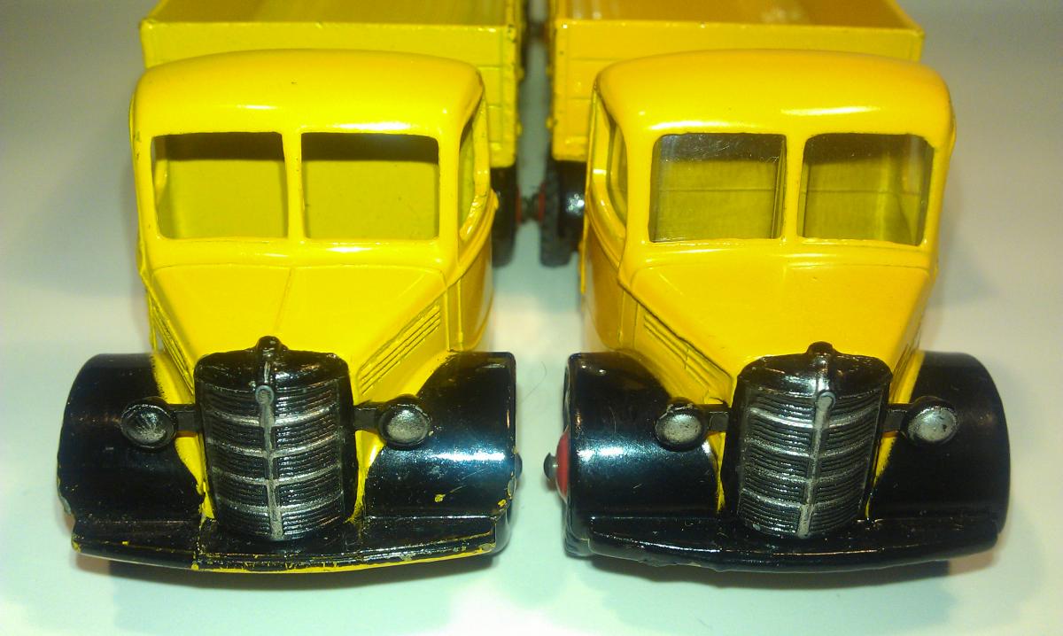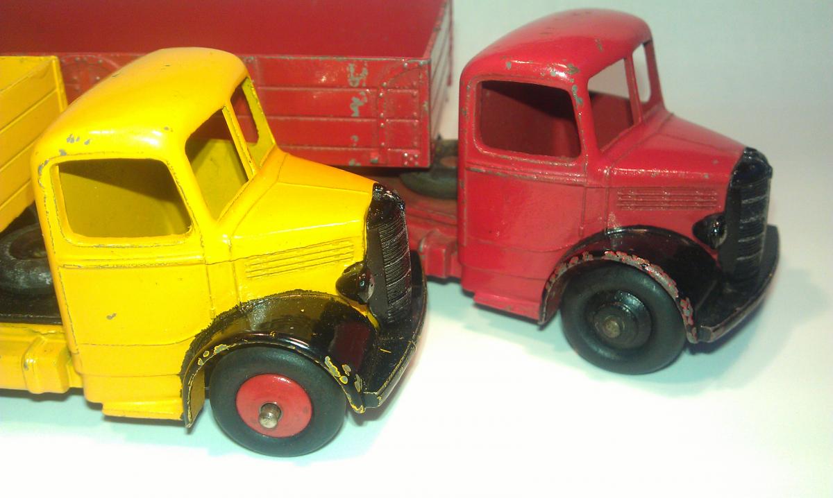 I just received the Classic Toys magazine of which Jan Werner referred to the article by Stewart Orr & Graham Bridges about the Dinky Toys Bedford Trucks.About the interpretation of the Meccano drawing of the Bedford Articulated Vehicle Assembly, discussed in this topic, they stated - The Meccano drawings indicate the following:1. Mask-spraying of deck behind cab deleted October 1948 (so no red versions after this date).2. Rear wheel hubs amended March 1954.3. Treaded tyres specified from April 1958.4. Plastic windows added from January 1960. So my conclusion about the hand painting of the front mudguards since 29-10-1948 is not correct.Stays that the way of painting of the front mudguards visible changed in the later period of production, which can be concluded from my added pictures of two early Bedfords and two later Bedfords. The front mudguards of the early Bedfords are black painted close till the bonnet (see 1st picture), the front mudguards of the later Bedfords are black painted with a visible yellow border between the black painted mudguard and the yellow painted bonnet (see 2nd picture). The cross fading at the front mudguard on the drawing perhaps than means painting to do by mask spraying? And the front mudguards of the early Bedfords perhaps were hand painted in the beginning, as it looks on the yellow Bedford on the 1st picture. Who knows more about that, may tell it.Kind regards, Jan O.