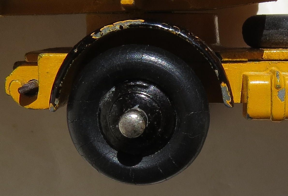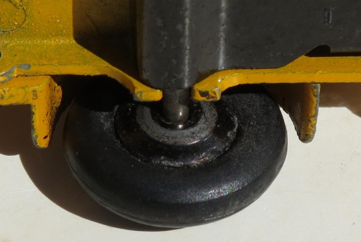 Good Evening/Morning Jan O and Kevin Many thanks for your kind words. Kevin - Yes, the method Meccano used for the rear axle was unique for Dinky Toys, although I was unaware of the relationship with Hornby Dublo. I have however, seen a similar method with Hornby O guage. As can be seen with the image below, this method did prove not to be such a good idea as the strain placed on the adjourning casting resulted in some paint loss. Jan O. - I quite agree that photographs are essential in providing a visual interpretation. Accordingly, this has been rectified for the first casting for the 521 in yellow with black mudguards all round. You are quite correct with No. 24, as I have encountered a problem with with it. The size of the lettering for DINKY SUPERTOYS which covered No. 22, 23 and 24 of my original list, as I no longer have access to some of the models from which I obtained these details, nor could I find any photographs, those days being before digital photography when one had to be careful with the number of images taken. I am only including it here, as eventually I will (hopefully) locate the models from which I made my original assessment. 1. Vertical front axle supports