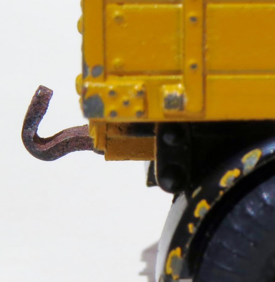 Bruce, this is an extremely interesting photograph of the Bedford Articulated Trailer rear axle location - I have never knowingly seen this variation! I am intrigued by the small slot visible below the axle, at the division between red and black paint areas. Could this have been the fixing point for a tinplate axle retainer, in a similar manner to those used on Hornby Dublo railway wagons? - Kevin.