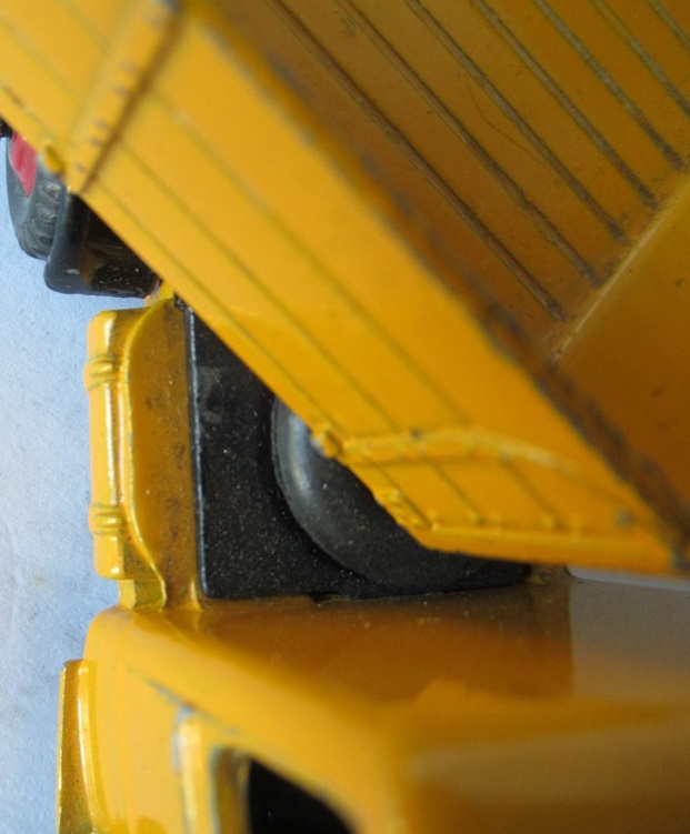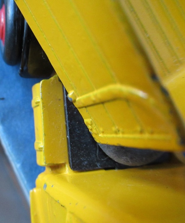 Dear Jan, Both have a reinforcement plate on the fuel tank. The one with black trailer mudguards is a Dinky Supertoys and the reinforcement is squared angles. In fact, it's a rectangle. The one with yellow trailer mudguards is a Dinky Toys and the reinforcement is round ended. Please have a look on the following photos. Kind regards Richard