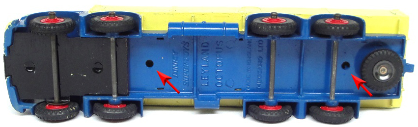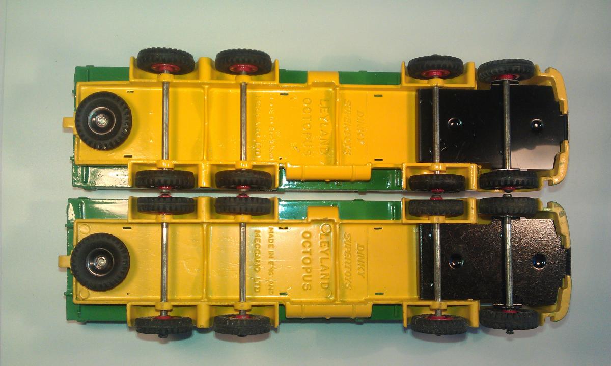 I have several of the 'common' type of yellow/green Octopus, but none of them have a number cast under the rear of the body (just above the towing hook), yet I have a red/fawn 901 Foden which has 934 cast in this position. I know the Foden to be original, but don't recall ever seeing this number on a Leyland. Does anyone have an example?