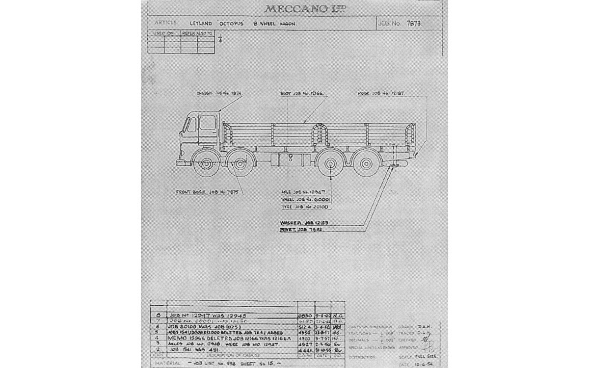 Thanks for activating this thread, Jan, starting with all this documentary information regarding the Leyland Octopus Wagon! Your beautiful examples are both post-1957, with holes for the lugs of the 1958 introduced Esso Tanker, no. 943, and with the fixed connection of chassis, body and spare tyre wheel. As an addition I can show a pre-1958 example without the holes for the tank and with the earlier regular bolt and nut connecting chassis, body and spare wheel. The quality control stamp inside the box lid reads: NI 3 56, so this one must belong to the very first batch. Kind regards, Jan