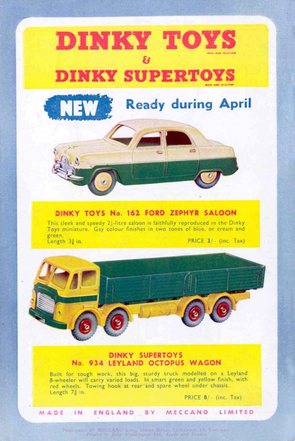 Thank you Kevin, it does not make sens that you can not find a yellow green Octopus with this marking. Your Foden Wagon above must be a very late one and have been made early in 1957 before they switched to the Leyland. Did they break the mould and make a new one without the marking. If the marking had been deleted, there would be a raised cartouche to hide the 934. An other Dinky mystery.