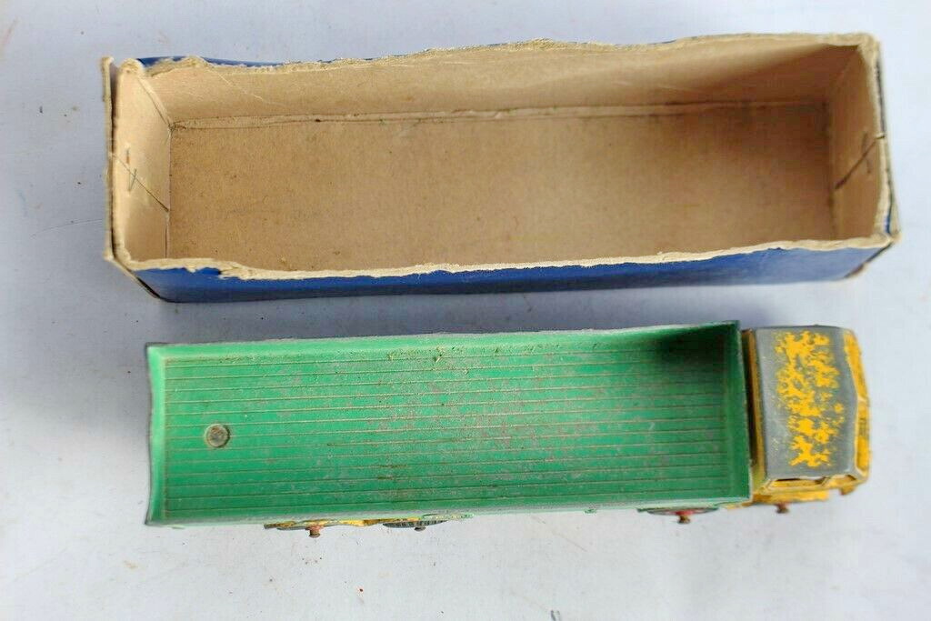 I came across an offer on Ebay France that surprised me. There, a 934 is offered for sale with the yellow band above the radiator and the spare wheel attached with a rivet. It is offered with a 934 box with straight lettering and a stamp AR 356 (= March 1956) in the box. According to GB of DT, the spare wheel was fixed from 22-8-57 with a rivet instead of screw and nut. My 934 with yellow band above the radiator and riveted spare wheel came in an unstamped box with Italic lettering. By me the question then arises: is the practical implementation of riveting here done far before the administration on the Job list or maybe the box belongs to a model with screw and bolt? The model can be found with the link: dead ebay link Jan Oldenhuis 17 May 2021