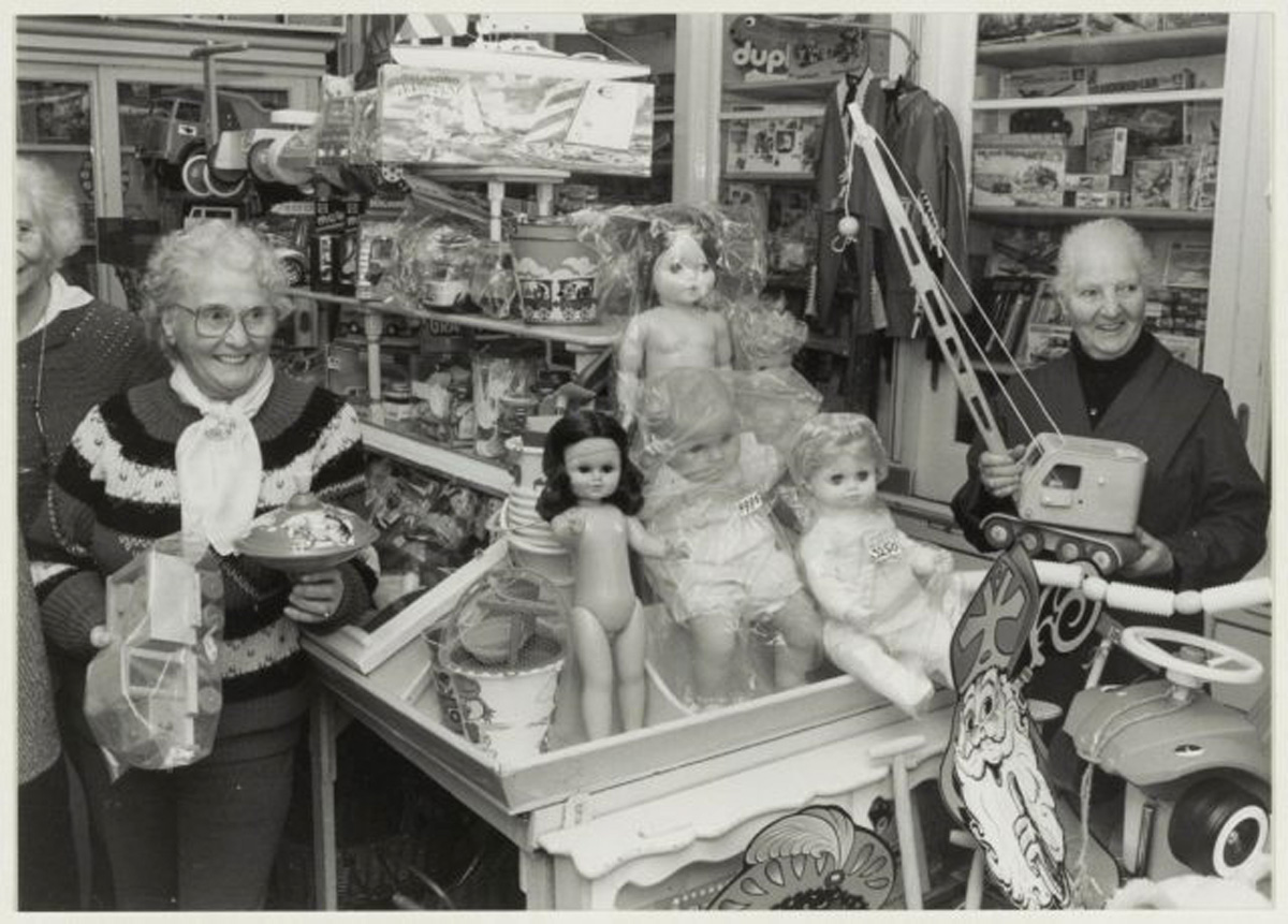 Hello Jan O., I remember there were at least seven shops in the Haarlem inner city selling Dinky Toys. So there must have been considerable competition and stock will not always have sold immediately. In those days already this was a good but rather old-fashioned shop, even in the shadow of the (then) big V&D department store with a great variety of new (Dinky) toys. Early Dinky collectors will remember that in the course of the1960s rather old stock was stiil 'as new' available in shops like this one, of which the furniture and displays seemed to date of the early decades of the 20th century. Unfortunately it does not exist anymore - although I have been in it in the 1990's when the ladies Akkers-Vasterman were very old and the shop furniture still the same! I happily found this photo by Cees de Boer below, via the image database of Europeana in the Noord-Holland Archive, the sisters Akkers-Vasterman in their toy shop in 1984.