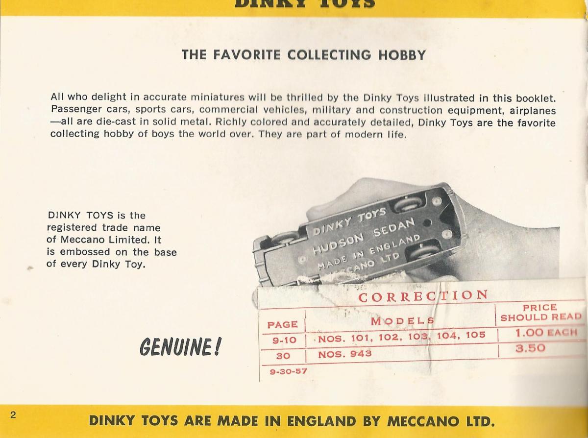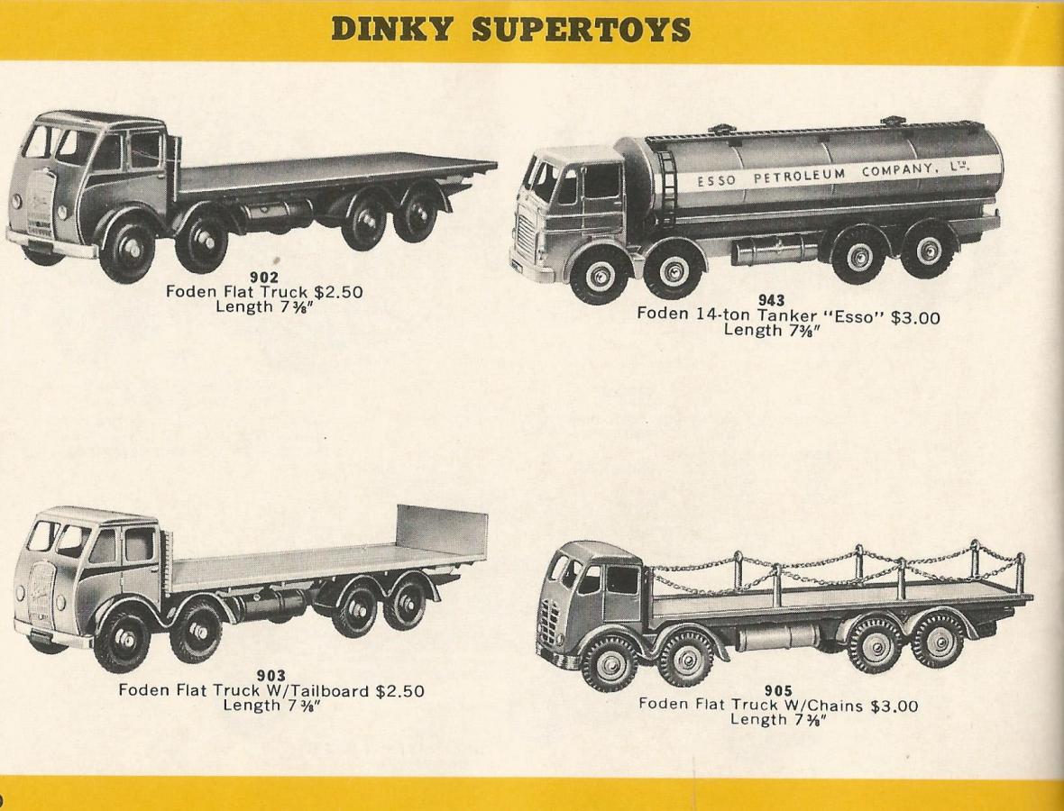 USA DT catalogue 1957 with 943 tanker Esso price $ 3,00. Note the wrong model name Foden below the 943 picture. Note the correction price of $ 3,50 below.
