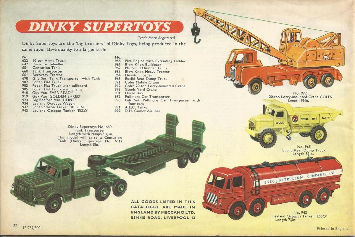 Inside bottom lid box 943: Dual inspection stamps: 1st E Z957 (September 1957) and 2nd Mar 1958 (March 1958). The 1st stamp September 1957 shows clearly that this model was released and exported to the USA market before the introduction of model 943 in MM March 1958. Together with the publishing of model 943 in the USA catalogue September 1957 and the pencil price $3,50 on the box you can assume that model 943 already in September 1957 was available/were sold in the USA. All these facts confirms this statement. The second stamp Mar 1958 in the same box is unusual and mysterious. I think that it is a fake date that suggest following the release of the UK market starting March 1958, but I leave better meanings to others. Its hard to believe that the publication of model 943 in all DT catalogues of 1957 was a marketing mistake in time of release of model 943 because the drawing of model 943 was finished 19-2-1957 according a picture of this drawing in the DT encyclopaedia of Jacques Dujardin. The chassis of the Leyland Octopus and the (Foden) tank were already in production (934 and 504/942) and it was only a matter of easily mounting both parts together, so model 943 could easily be ready for export to the USA market in September 1957 Comments about all of this are very welcome. Kind regards to all of you, Jan Oldenhuis 13-7-2017.