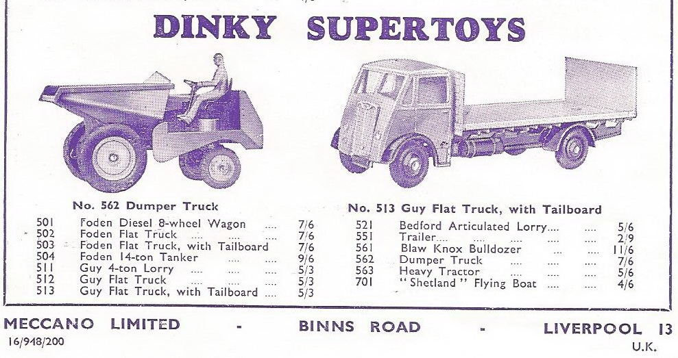 Meccano Price list September 1948. Price 7/6. Based on the Muir-Hill model 10B 'Hiway' Dumper Truck manufactured by E. Boydell & Co. LTD Manchester 16.