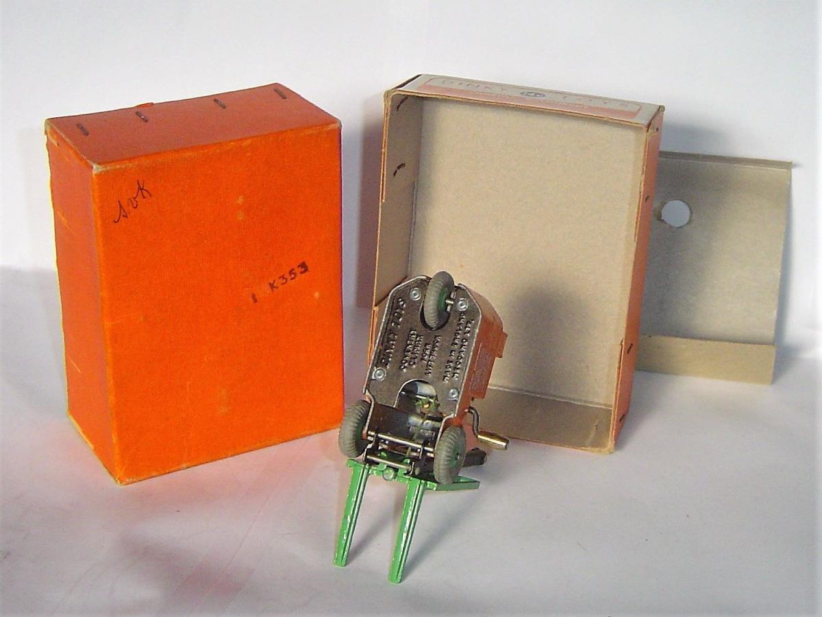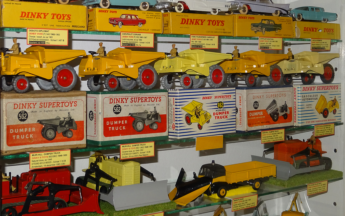 This example wasn't recorded here yet: lighter yellow than the previous version, all-diecast wheels (still no. 562 cast underneath) and packed in a 962 blue striped lidbox with the Dinky Supertoys brand name in italics. No quality control stamp present inside the box, but to be dated approx. 1958-1961.