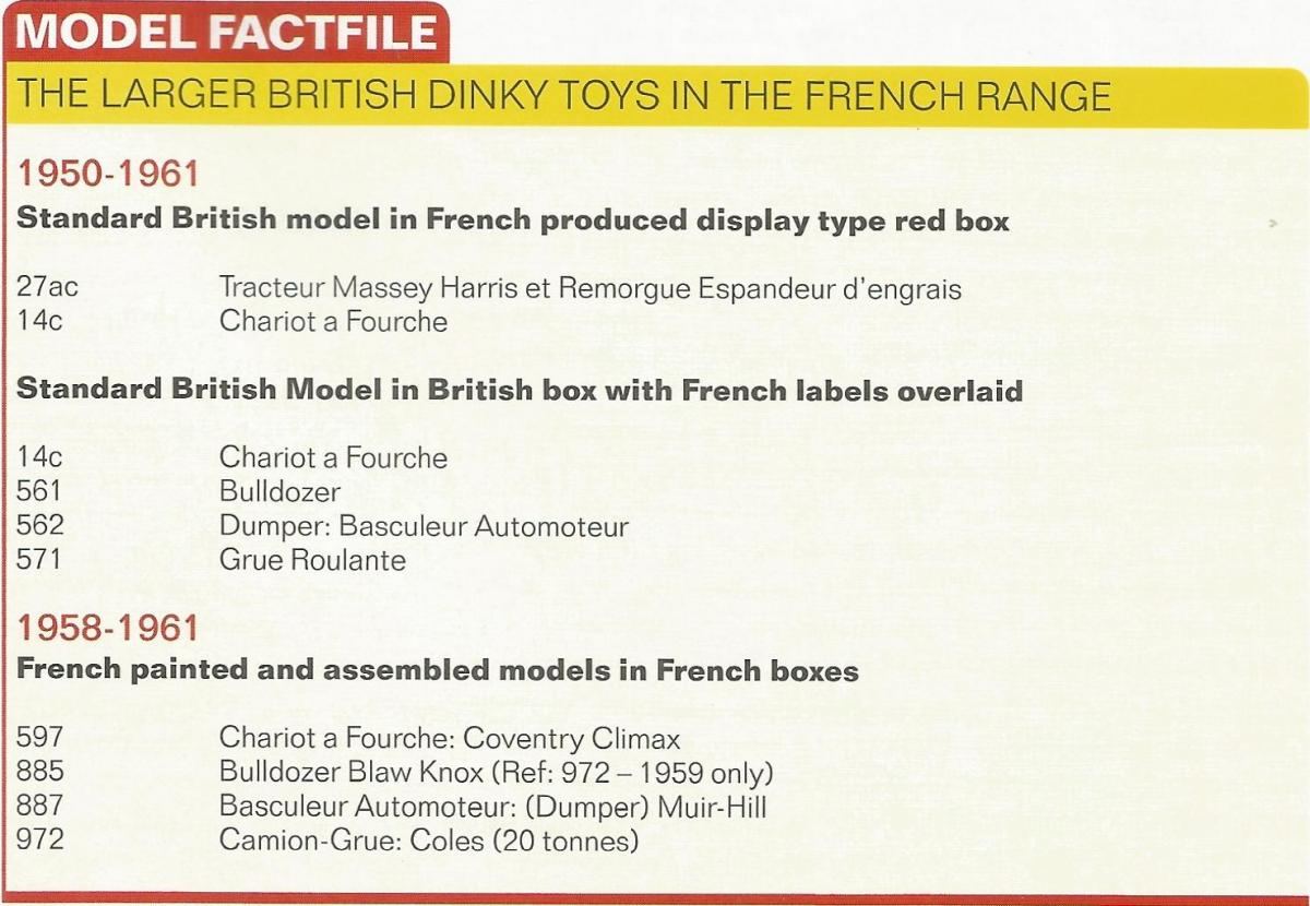 Brian Salter wrote many interesting and valuable articles, both in Model Collector and in Diecast Collector (in the latter as 'Roger Wynn'). The one you mention, Jan, has led me to start also collecting these 'Anglo-French' Dinky Toys (and Supertoys), back in 2006. Unfortunately I am not complete yet, the hard-to-find red boxed ones still wanting. I took a photograph of the 'Grue roulante' box a moment ago, also showing the same contours underneath and a tiny strip extending below. Kind regards, Jan