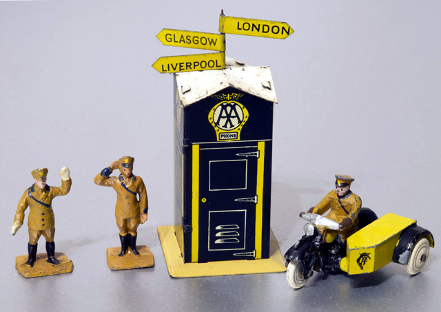 Wow--you have moved very quickly to acquire those 2 nice sets.....now you just have to find the Police version. Am curious....did you happen to find those from another collector/dealer or on auction? Either way nice score! And you are right....that AA box is much more intricate and involved than the simple RAC. I have come to enjoy the pre-war items of tinplate and die cast and feel it is somewhat of a shame that tinplate did not survive the war. I also have both the garage and the filling station and enjoy the nicely detailed scenes on both of them. Good luck on finding the rest!! Terry