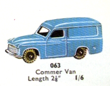 Hi Jacques,I have two Dublo 062 Singer Roadsters and they both have '1' cast at the rear. The reason for the two is that one is fitted with knobbly grey plastic wheels. Picture of it along with the Ford Prefect. Has anyone got or seen the Commer van with knobbly wheels as shown in the Eighth U.K catalogue? Ron F