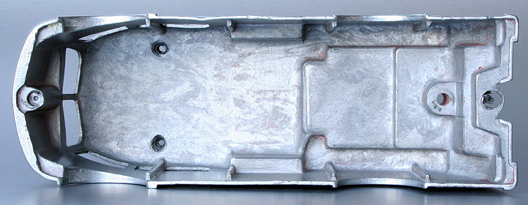 Now I own one bare casting, having stripped off the paint from a very play-worn example, dating from before 1955 (as the now separate bottom plate shows the number 555, which was changed into 955 in January 1955).