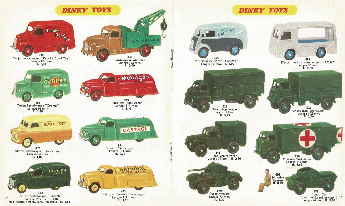 Model 555 with the price 6/3 in Dinky Toys Export Sterling catalogue of October 1953. Now I was sure that model 555 with the silver ladder with the same price 9/4 on a same box must be the 2nd model version. In view of the excellent condition of both boxes, I assume that they are absolutely genuine and belongs to the models. According my research about the price of 9/4 can be concluded that model 555 with the brown ladder has been issued for only a period of maximum 3 months (November 1952 January 1953) and probably still shorter, because in that short period a change of the ladder has taken place from brown to silver. I could not find further information about the exactly date of changing the ladder from brown to silver. Through this very short time of release the conclusion may be drawn that model 555 with brown ladder will be scarce. In this case I found the pencil price of 9/4 on both identical boxes but with different model versions in it, for the proof of my research so important that I decided to purchase both models and I am very happy that I did so. Sometimes you have to make such a decision to prevent later regrets. In this forum we have already discussed the presence of a price indication or something like that on the box or the model itself. I have now experienced the usefulness of such a price indication. Now I come to the other question I asked myself when I could not find the price 9/4 for model 555 in any regular catalogue or price list: How do DT retailers know what price they should ask for their received new DT products when there is no recent price list? I think that I found the answer to that question in an example of a Dutch Dinky Toys invoice of 1957, from the Dutch agent / distributor Hausemann & Htte N.V. in Amsterdam to the Toy store Ooievaar in Schiedam. The sales price per DT model is stated in the invoice and the total amount of the order is deducted by 30 % for Dinky Toys and 32 % for Jumbo games. A retailer of Dinky Toys in the Netherlands deserved thus 30 % of the sales price per model. I found it very valuable to establish this. I show these Dutch invoice 1957 and the Dutch Dinky Toys catalogue 1957 with Dutch retail prices and still some pictures of my purchase in Full size. Best wishes to all members, Jan Oldenhuis, 26 September 2017