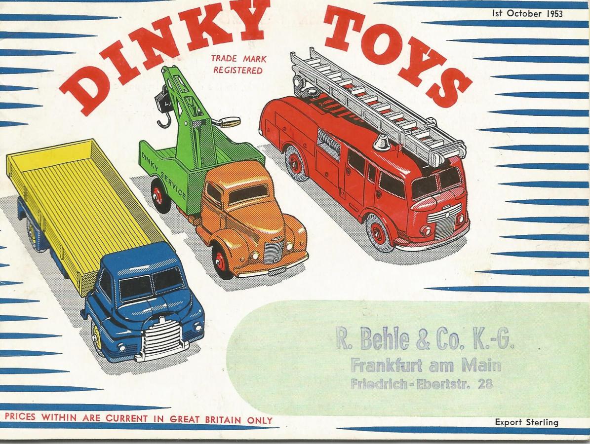 Model 555 on the front page of Dinky Toys catalogue Export Sterling October 1953. Note the shop stamp Frankfurt am Main !!!