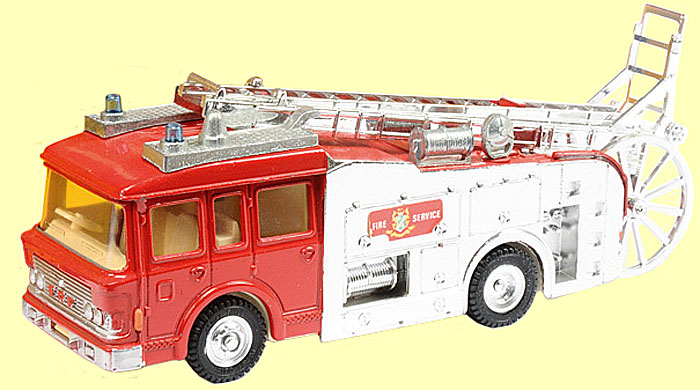 For this model, there are many variations : Red body, white plastic base plate and interior, die cast escape on grey wheels Red body, yellow plastic base plate and interior, die cast escape on grey wheels Red body, yellow plastic base plate and interior, die cast escape, white plastic extension and wheels Red body, white plastic base plate and interior, die cast escape, tan plastic escape extension and wheels Red body, white plastic base plate and interior, white die cast escape, white plastic escape extension and wheels Metallic red body, ? ? ? plastic base plate and interior, ? ? ? escape, ? ? ? escape extension and ? ? ? wheels Red cab, chrome plated rear body, escape and hubs, white plastic interiorI have two questions : Mike R. mentions a metallic red version, I have never seen one nor have Vectis or QDT. Is this a mistake by Mike ? A rare variation has what seems to be a chrome plated rear body and chrome hubs. Is it chrome plate or grey paint ? When was this variation made ?Thanks for any help. Jacques