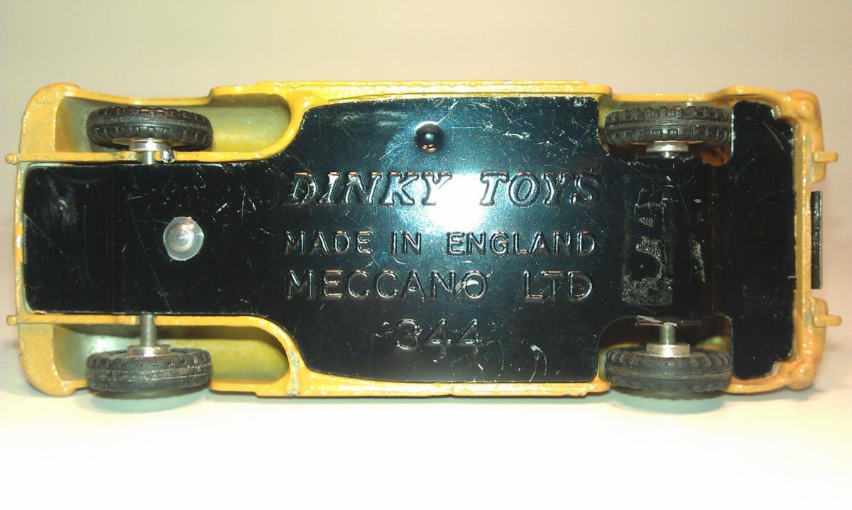 Dinky Toys 27f - 344 comparison painting rear bumpers Jan W TMT The silver painting at the rear does not seem to me as a Paint Job from Meccano Liverpool because I have not seen this in a series of other same models. Your left model is a later 344 with cream hubs. I own the model, directly issued after that, with spun hubs. If the silver painting of your left model is an original Paint Job from Meccano Liverpool then my later model with spun hubs should also have this silver painting, but that is not the case and I do not see it on other same models either.