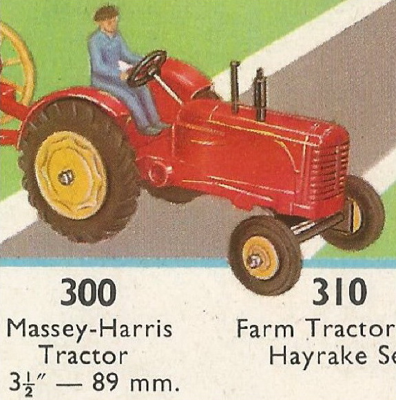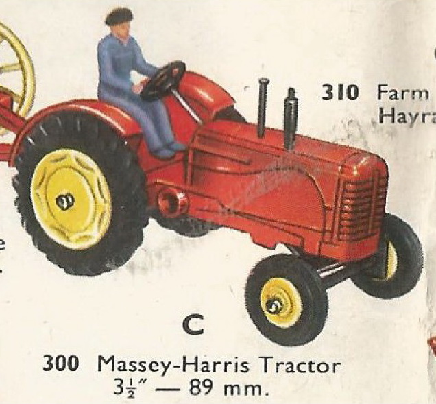 Massey Harris in UK catalogue 1963 Yes Jacques, this variation really exists. This MH version is very hard to find, but I found and bought one, albeit in a played with condition, but I like to have this variation. Probably made around 1962 when was switched from metal wheels to the production of rubber tires.
