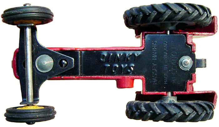 Jacques. Thank you for your very interesting and instructive technical explanation.The Massey Harris base plate has never bear a sales number 27a or 300 as there was no room for it. This statement can be found in the attached Meccano memo No. 17656 on page 218 GBofDT: Classification of embossed Dinky Toy bases, dated 15-11-51. It is stated in the column Base Job No. under 12926: Base for Massey-Harris Farm Tractor: C - Ass: Job No. 12924.At the top of the memo it is stated that classification C means: Bases with lettering limited in size by the space available. So there was apparently no room for the model number. The base plate for the later 300 Massey-Ferguson did not change this either and remained the same base plate. It even kept the Massey-Harris name on the base plate, while carrying Massey-Ferguson transfers.The Field Marshall Tractor 27n / 301 did have enough space in the base plate for a sales number 301, because the base is wider, as you can see in the attached photo. As you can see my 301 is a rare one, as the number 301 is not completely pressed into the base plate. I have not seen an identical example of this yet.Kind regards, Jan Oldenhuis 28 September 2020.