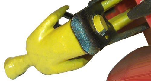 Jan O, The plastic driver's rear end spigot is not a plug, it is flatened by hyper frequencies (micro waves) this process allows to heat an accurate part of a plastic piece to soften it. When soft the spigot is flatened with a hand tool.I do not know how this third variation of the yellow metal driver has been made.