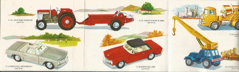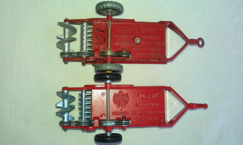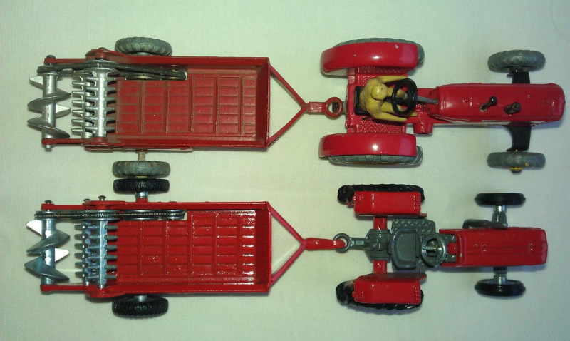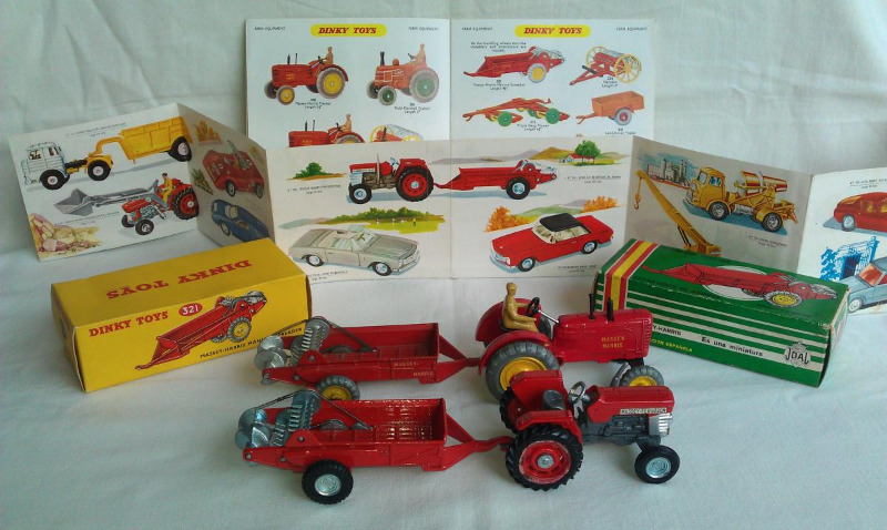Given the extreme similarities in scale, construction, etc. I would not dismiss this Joal Massey-Harris manure spreader as a Dinky copy. I believe Meccano Ltd. sold the tooling to Joal, who then made some modifications and issued their own version. I have never seen any documentation of this fact, but I base my opinion on the fact that the #117 Mercedes C111 also issued by Joal used the Dinky mould. The image below is not mine (it was taken from an old eBay listing) but I have the model and have compared it side by side with the Dinky. While Joal again did some minor modifications, the scale, construction, and opening parts are identical to the original.