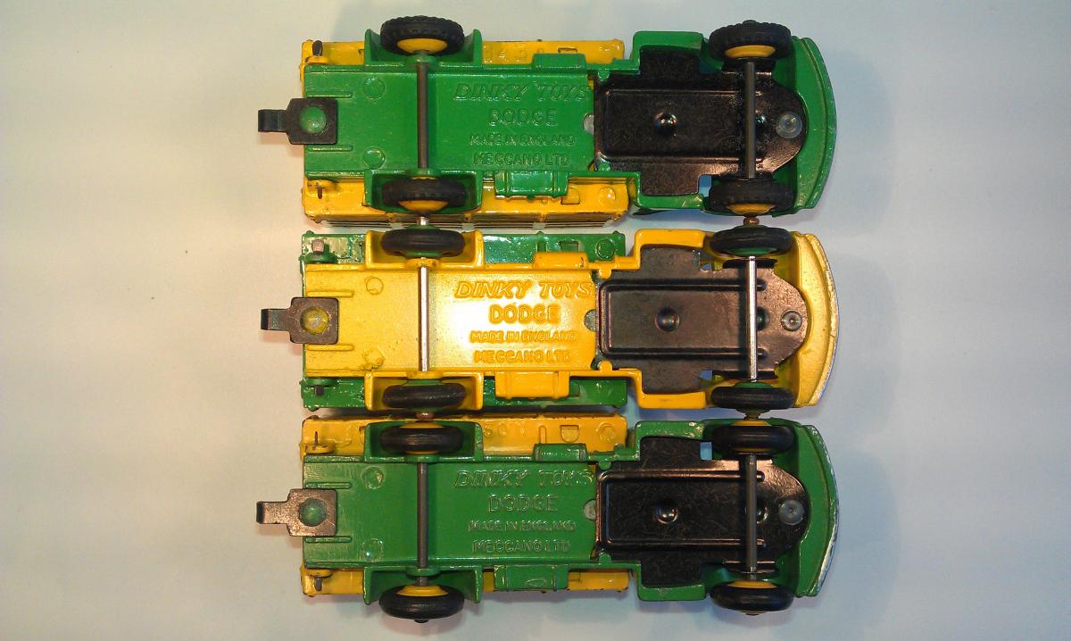 30n in 1st colour catalogue UK international 1952 There are several colour combinations and 3 baseplate versions. As far as I know, the order of issue of the numbers in the base is: 1) without number; 2) 30N and 3) 343. There are 2 types cab - with (early) or without ventilation holes on engine hood sides (later). Here are my 3 Dodge Farm Produce Wagons with 3 different baseplate versions and 2 types cab. Green / yellow is my favourite colour combination. Jan Oldenhuis 2-2-2018