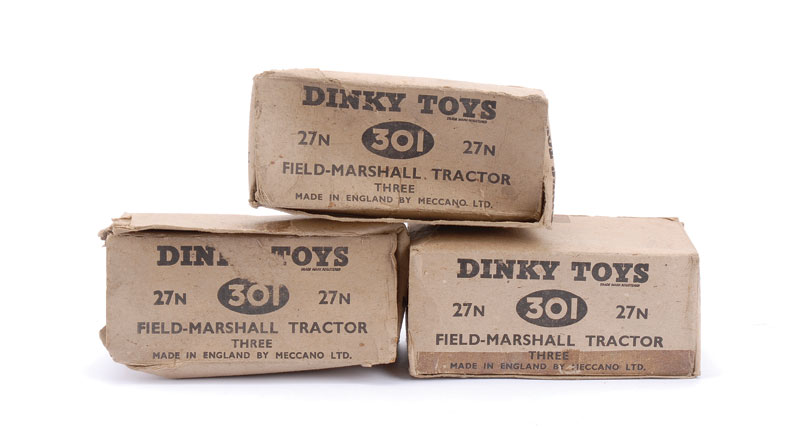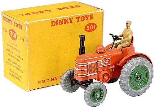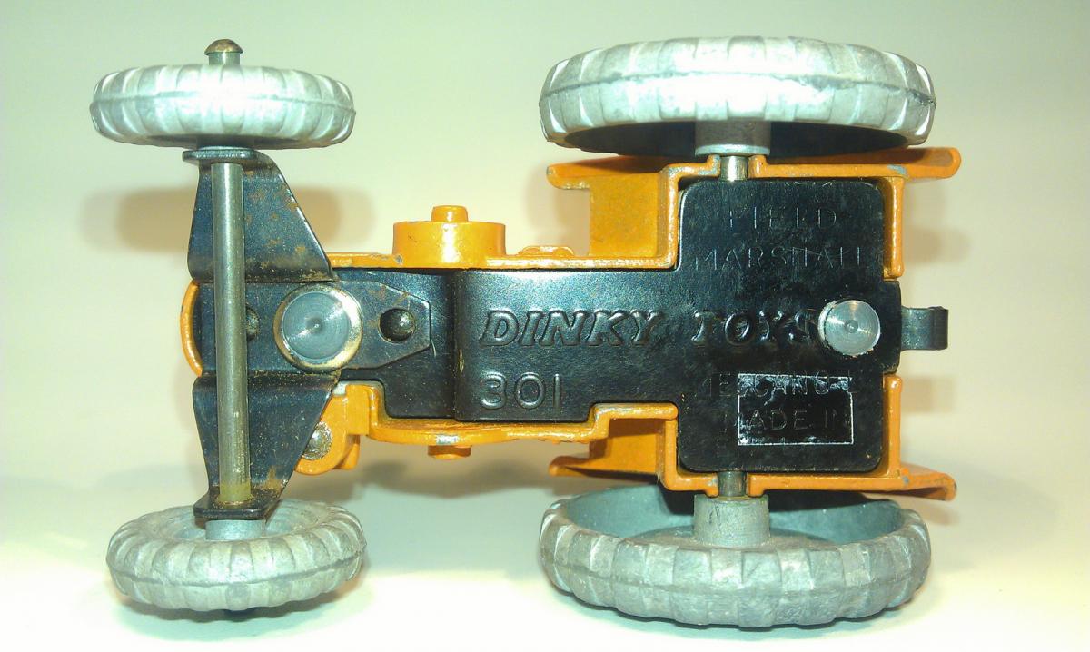 Picture by courtesy of Vectis Auctions. I have found on Vectis this rare early 301 yellow box which might help and complete your research.The renumbering was probably done during only one or two days when the list of new numbers was added to the existing alpha numerical list. From that day the new boxes were printed when needed with the dual references over a period of perhaps a year. You will never find a list of the dates when new boxes have been printed and made available on the market. Ron, An interesting picture of the rare Field Marshall with tyres and metal driver. Unfortunately, the framing of the picture is bad. Would you have a picture showing the entire model ?
