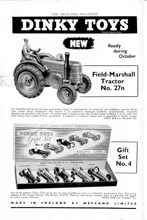 Introduction Field-Marshall tractor 27N and Gift Set No. 4 in MM October 1953.