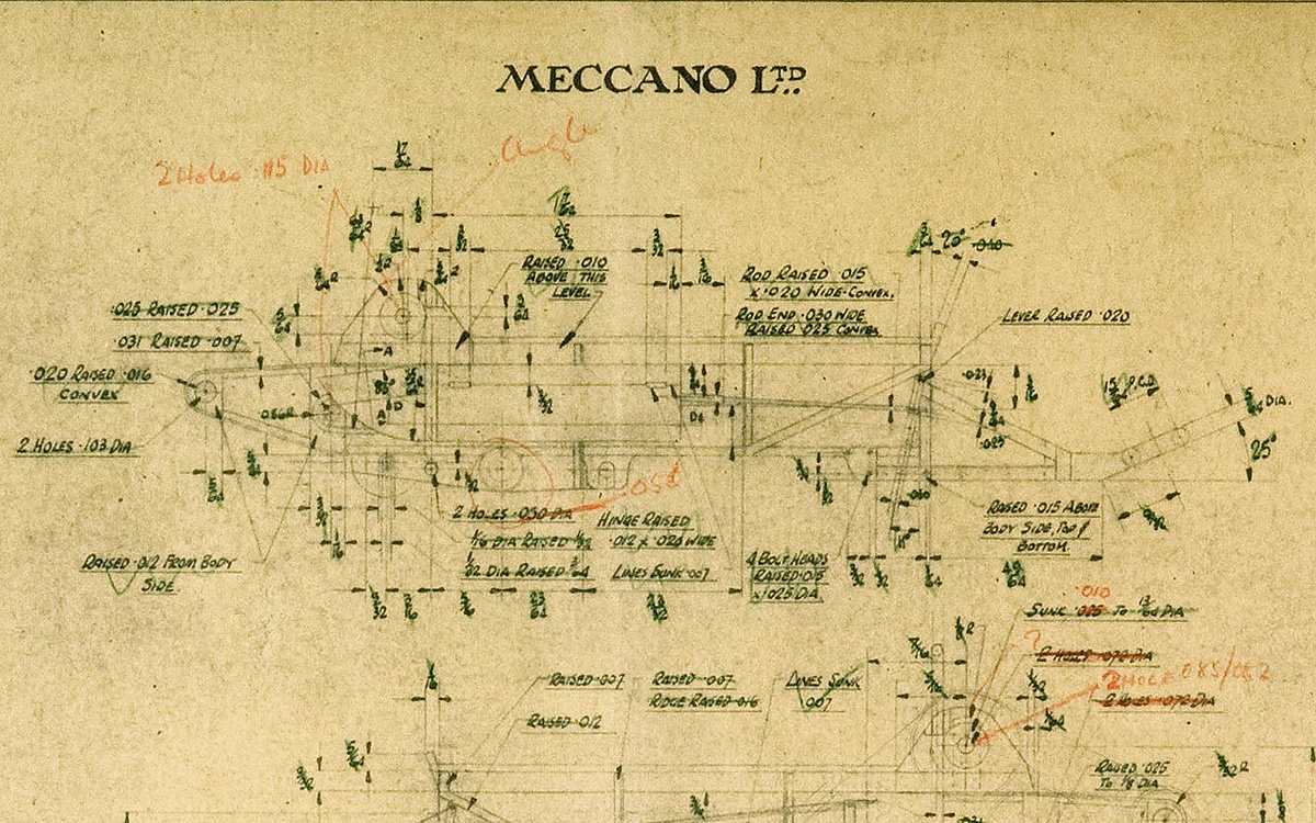 Thanks Jan, for this very nice explanation and documentation! I cant help admiring this model for its relative complexity, with its many moving interactive parts, and driven by a metal spring. A part of the large factory drawing below (the full image is included in the documents section, for registered members only) demonstrates the admirably struggling with the complexity of the design and functioning parts. Perhaps this is also the place to remind that the Manure Spreader was also included in the very scarce French gift set no. 27ac Tracteur Massey Harris et remorque pandeur dengrais, a 1950 import from Liverpool, the combination packed in an attractive French red folding open lid box. Kind regards, Jan W