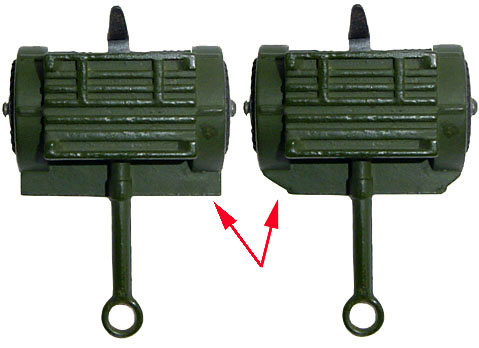 Jacques So in essence, there are three versions of the 687 Ammunition Trailer for the 25-Pounder Field Gun: 1) Base plate above the axle and supported on four corner bosses, with the plate inscribed with the 687 sales number 2) Base plate under the axle with the corner bosses reduced in height, plate inscribed with the 687 sales number 3) Base plate under the axle with the corner bosses reduced in height, with no sales number 687 inscribed For the fastidious collector, any of the above having the base plate reversed, front/rear. Bruce