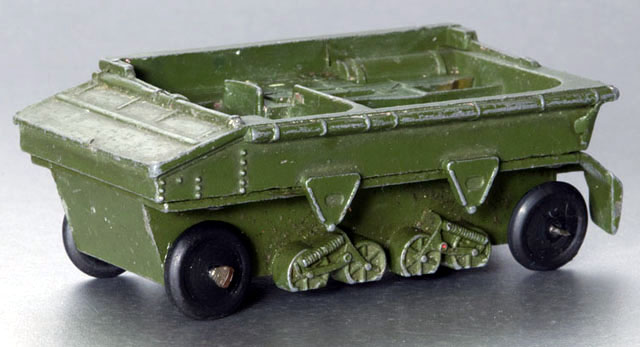 The wheels are original as they were definitely fitted before the axle ends were crimped.This version was not known about for some time but it eventually emerged.There is also a version of the 152a Light Tank fitted with the same wheels.I can only assume that this was at a time when either the chain, or metal, was in short supply and Dinky were forced to fit the wheels in order to sell the vehicles.Dave