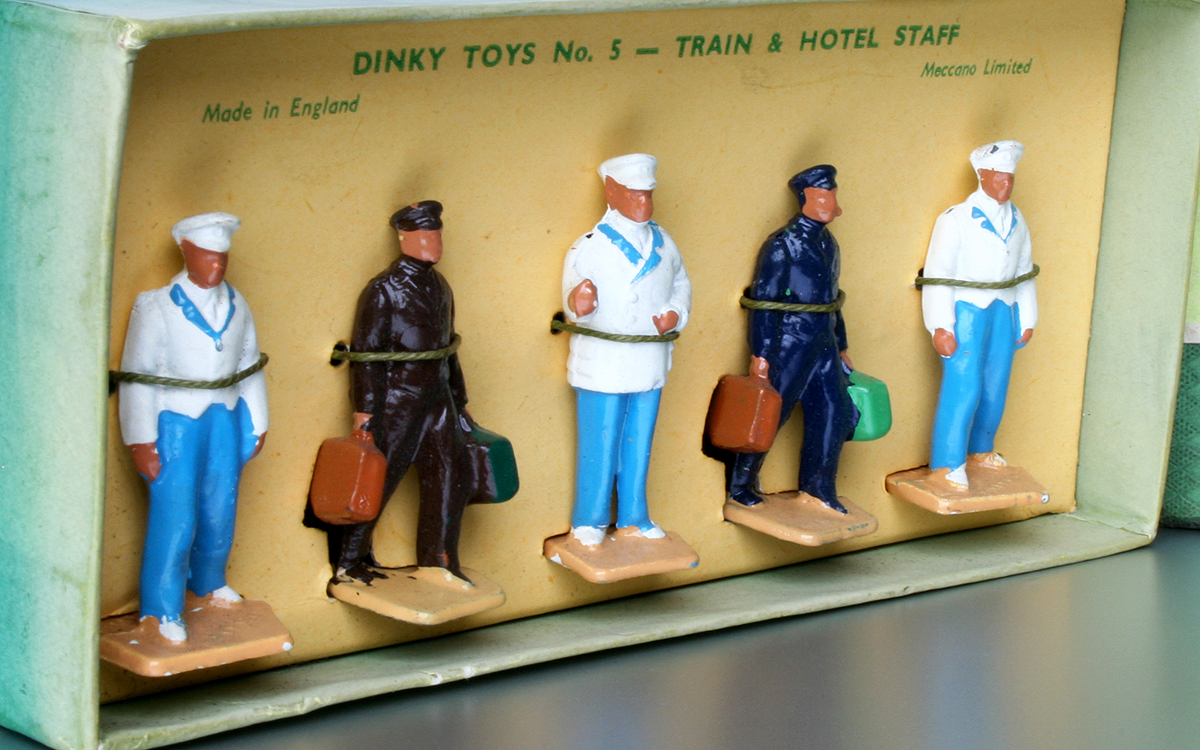 Hi Chris, coming back to your request I presumed my post-war Train & Hotel Staff set is strung in a similar way. But this one has a cardboard insert on which they are mounted, which fits so tightly, that I cannot take it out without force (and possible damage). Nevertheless, this detailed picture may give you inspiration. I guess it cannot be too difficult to do the stringing at the back. But if you want to copy the original stringing exactly, I'm afraid you will have to wait till another of our members will help you. Kind regards, Jan