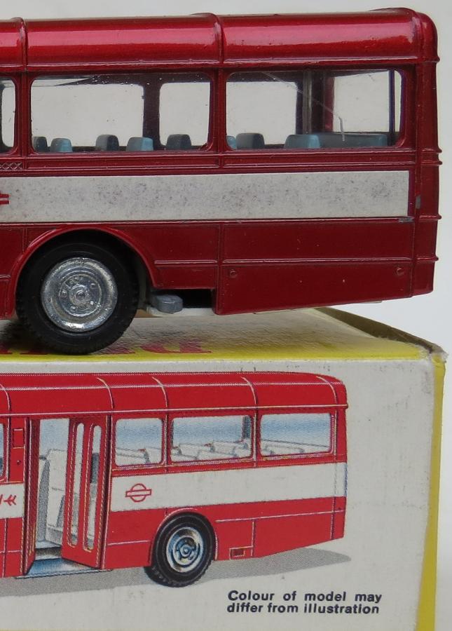 . Also note that the exemplar photographed in the magazine comes with dark doors, surely not white. Perhaps red? Catalogues and boxes do show a drawn bus with red doors. Also, in the MM the item is correctly described as being an A.E.C. (*), which rather surprisingly doesn't appear again in any official listing or box, as far as I know. Maybe out of early royalties issues? Just a hint. Handwritten price on my exemplar's box is 1.15p. David (700) (*) A Swift, I suppose, or am I wrong?