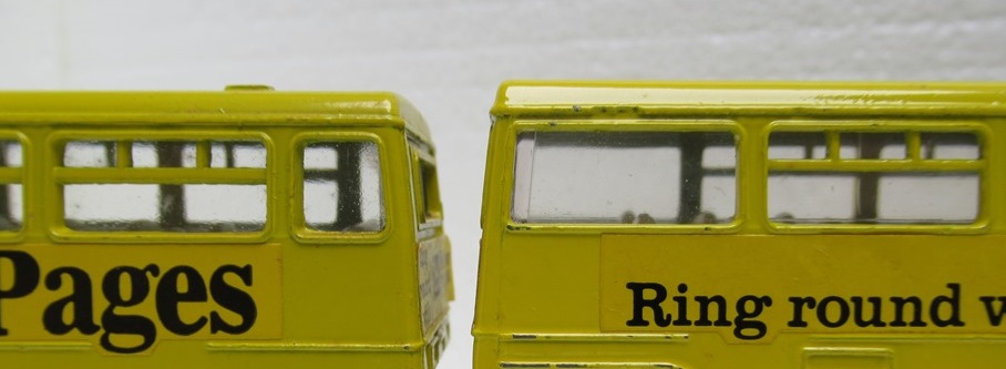 Many thanks for your reply. I've been lucky with the Kenning bus, as I also found the white and blue versions at a car boot sale. It must be to make up for never getting one all those years ago! I really liked my Yellow Pages bus (until too much of the paint fell off, it really didn't seem to adhere well to the metal), but I did find it a little annoying that it was too small to match my other toy cars. Even Matchbox cars were generally too big to sit comfortably alongside it. I had a pair of Red Arrow buses, but they must have made less of an impression as I don't remember them as well as that Yellow Pages Atlantean. I do remember that one had a white base and the other a black base.