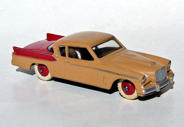 Hello Jose Thanks for your observation on the 238, although I still feel that it is a long way off the turquoise that it should be! However, the catalogue showing the 169 Studebaker Golden Hawk is correct. The model was released with red ridged wheels.