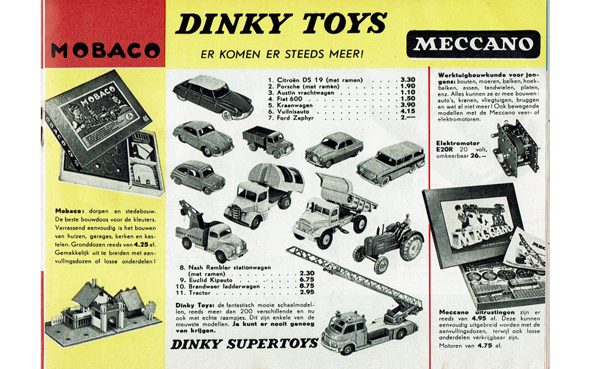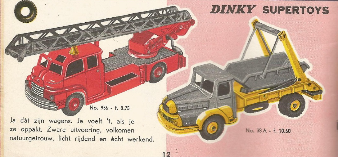 Jan, a very nice toy book to see what back then (1958) was sold to toys. Certainly the brands from that time are interesting to know. Very nice if you have examples of that time out of the book to show and your DT 956 is a very beautiful one. I also have a toy book from 1958 by Meijer & Blessing Rotterdam. This shop still exists and is well known in the region through the sale of trains and trains model construction. This book was published by the Dutch distributor of Dinky Toys: Hausemann & Htte N.V. Amsterdam, you well known and has 40 pages. There are 4 pages with Dinky Toys, including your DT 956. Also French Dinky Toys in it. I'll show you also pictures of that book. Jan Oldenhuis 18-10-2017